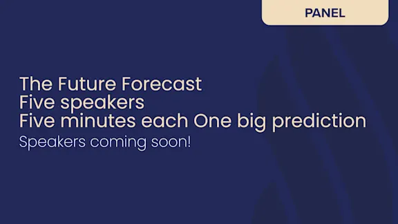 The Future Forecast brings together five sharp perspectives in a rapid‑fire format designed to spark provocation and possibility. Five speakers. Five minutes each. One big prediction about the forces reshaping our industry. Topics: